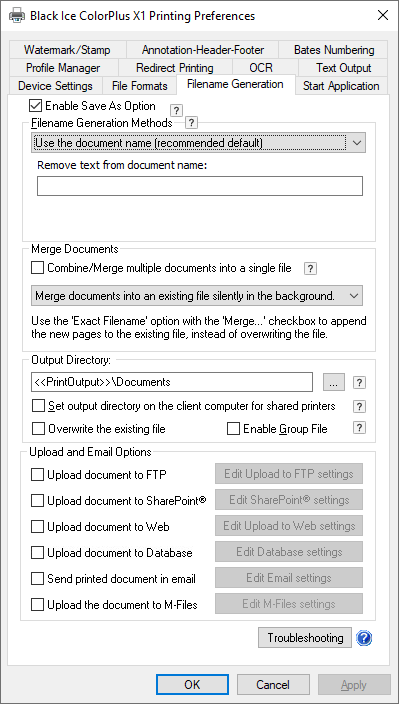 Select the “Filename generation” tab and set the “Output directory” to the specified environmental variable. To set the variable correctly the variable name must be between << >> or %% tags.