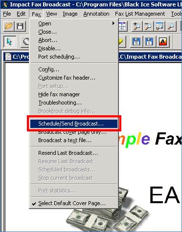 3. Go to Fax > Schedule/Send Broadcast menu option and try to send a fax.