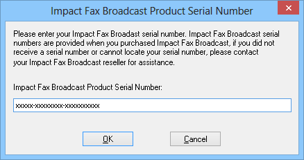 Enter your serial number, received in email with the purchase of the Impact Fax Broadcast.