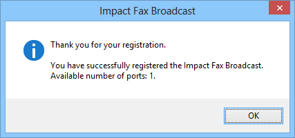 If unsuccessful, please read the Manually registering the Impact Fax Broadcast Release (purchased version) section.