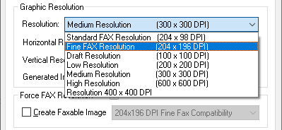 One can edit the graphic resolution of the printer driver or create a custom pre-defined default graphic resolution list for the users.