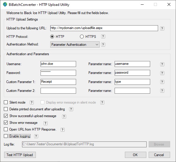 Silent mode – If this option is enabled, then the HTTP Uploader will upload the documents without any user interaction. This feature is useful if one would like to upload every converted document with the same parameters every time.