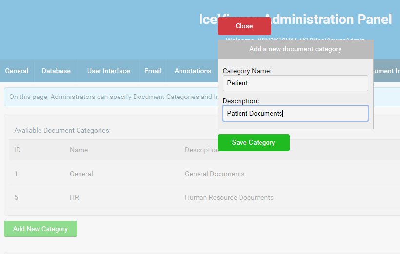 In IceViewer HTML5, Administrators can specify document categories for helping users organize their documents more easily.