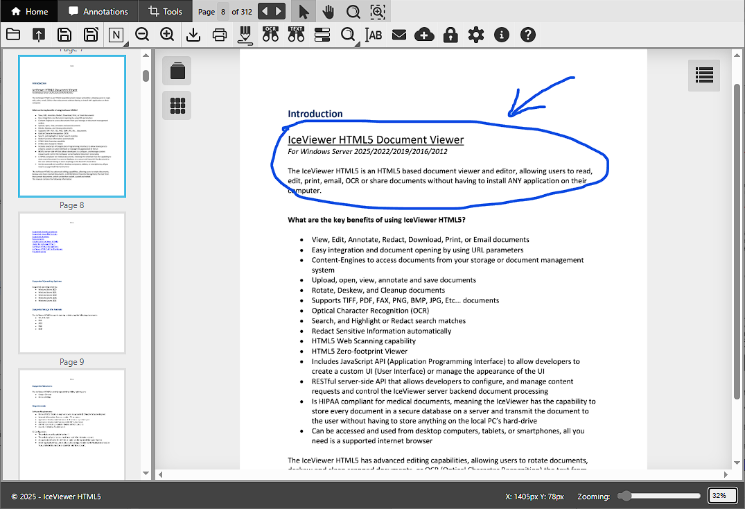 The IceViewer HTML5 allows users to draw or write by freehand on the currently opened document or image. For freehand drawing, please select the Draw on the document option on the top toolbar.
