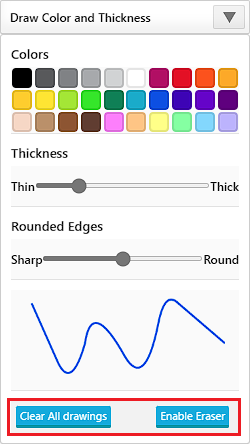 To clear individual drawings, click the Enable Eraser button, then left-click on the annotation to be removed. To remove every drawing from the document, please click on the Clear All drawings button.