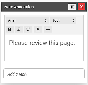 On the Note Annotation window, the user can enter any text information that will appear inside the note, and configure the font type, style, size and alignment.