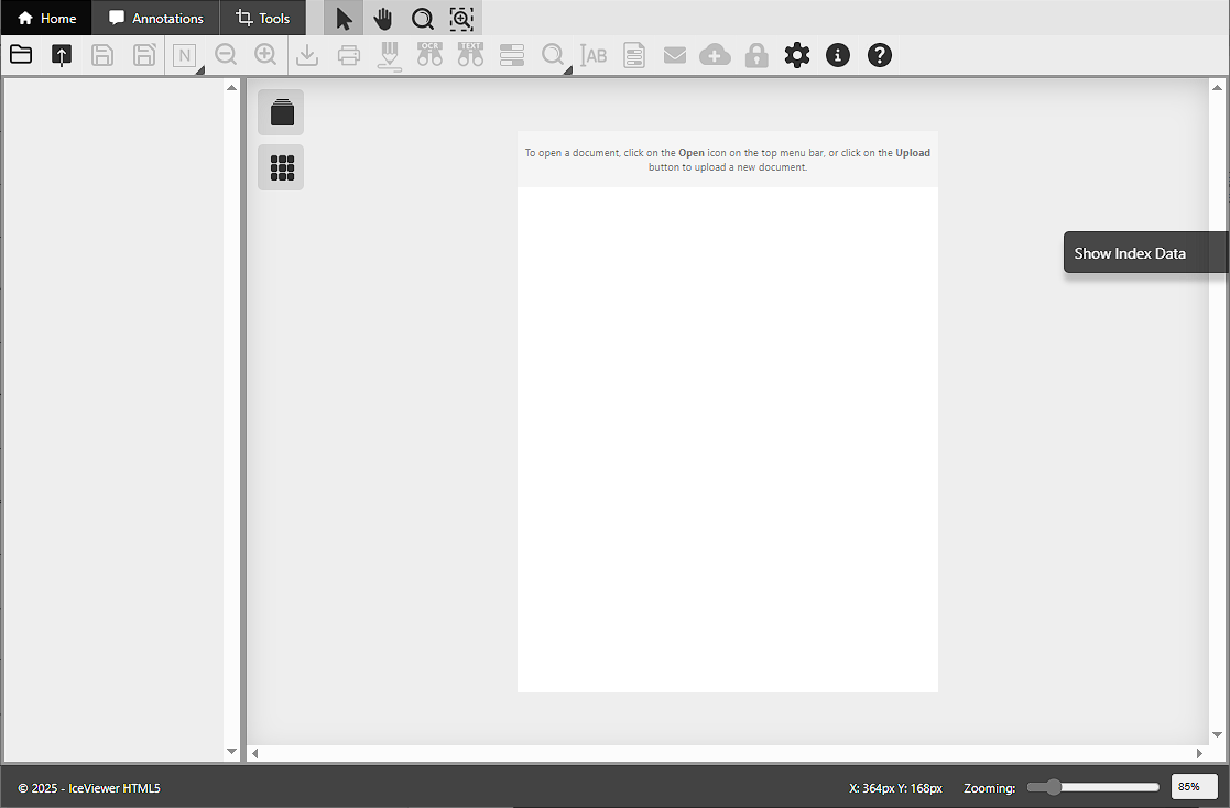 If the document list is empty, it means that no documents has been uploaded to the IceViewer HTML5 yet. To upload a document, please refer to the Uploading Documents section.