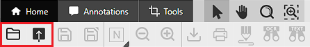 To open documents, click on Open, or Upload icons on the top-left corner, or open a document using URL parameters.