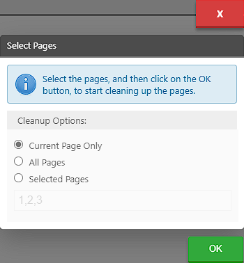 When clicking one of the rotate options, the user can select which pages to rotate on the Select Pages window.