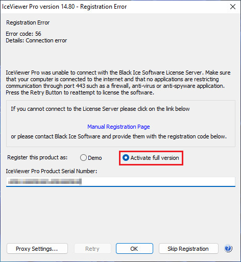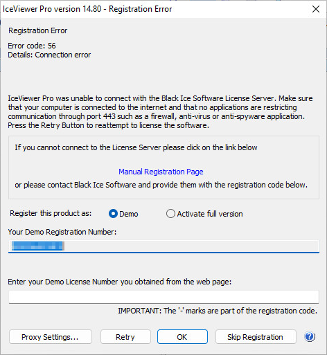The IceViewer also can be registered through a proxy server. For more information, please refer to the Registering through a Proxy server section.