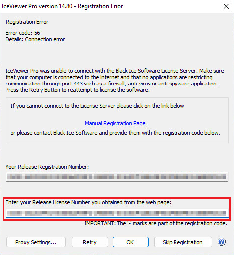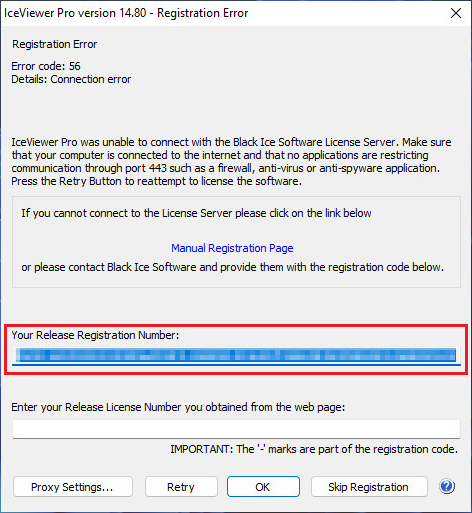 If the automatic registration fails during installation, one can register the IceViewer manually without an active internet connection by following the instructions below.