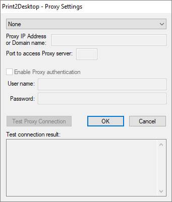 If the Proxy server is using user authentication, the Proxy authentication checkbox must be checked and the User name and Password must be specified.
