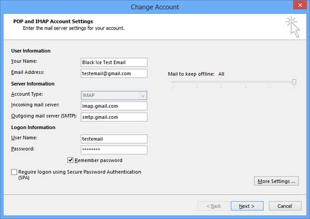 The Change Account window appears.