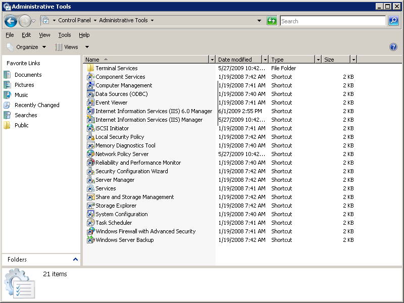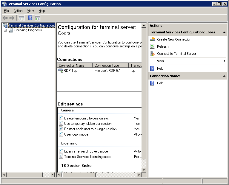 1. Open the Control Panel > Administrative Tools and select Terminal Services.