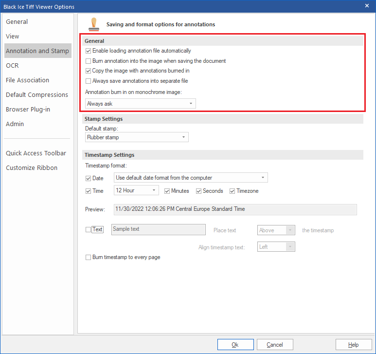 Burn annotation into the image when saving the document - If checked, when the user saves the document, this option will automatically burn the annotation into the TIFF image, so it will no longer be editable.