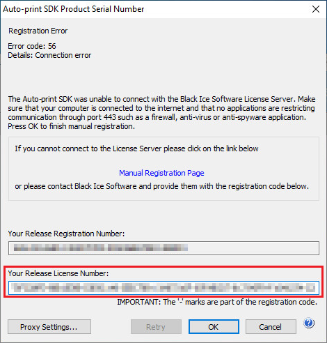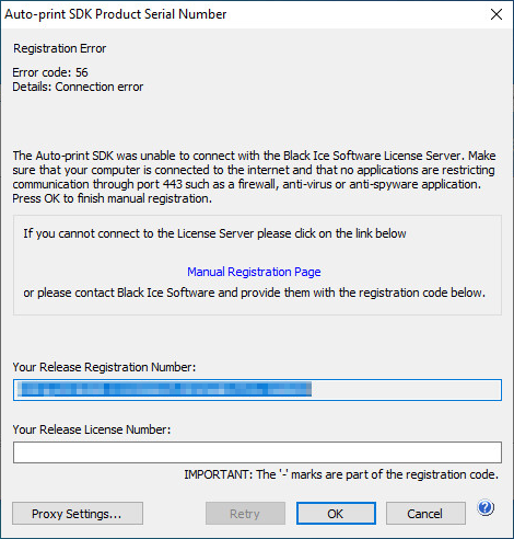 Auto-print SDK requires a secure Internet connection (HTTPS) on port 443 to register with the Black Ice Software License Server.