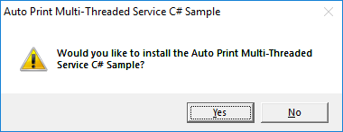 Double click to "Auto-print Multi-Threaded Service C# Sample.exe" and install "Auto-print Threaded Service C# Sample" service