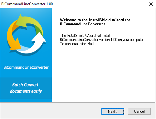 Go to the directory that you downloaded the program file to and double click on BiCommandLineConverterSetup.exe. The following screen will appear: