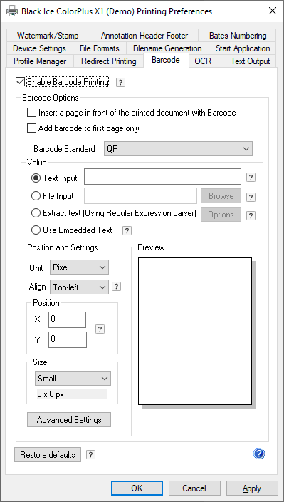 Advanced Barcode Settings: