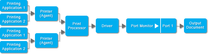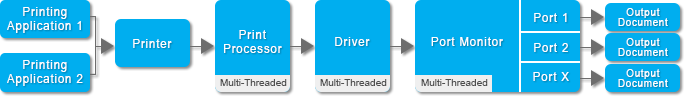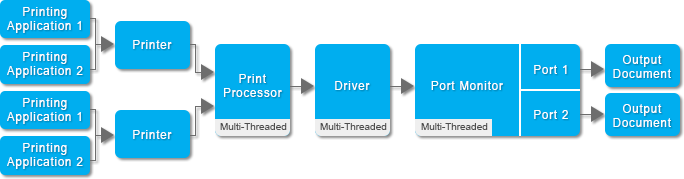 Agent Printers are printing documents sequentially (single-threaded) as the Single Printer Drivers, resulting slower document conversion when printing multiple documents at the same time, although this solution also has low system requirements and CPU usage.