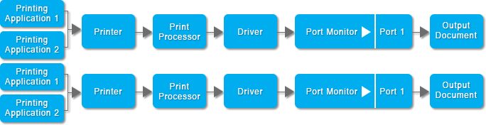 Single Printer Driver is recommended for low volume printing, as it offers sequential (single-threaded) printing. Sequential printing means that when one prints two document, the printer driver prints the first document, and after the printing is done, starts to print the second document.