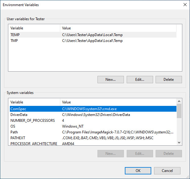 Follow the same steps for User1 user also by logging in as User1. Then, navigate to the Environment Variables settings (“Start menu -> Control Panel -> User Accounts -> Change my environment variables”), and add the new variable there:
