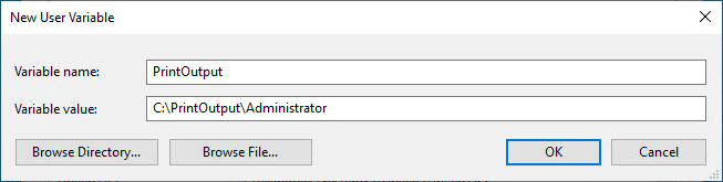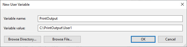 Assume there are two users on a machine, Administrator and User1. The objective is to set two different PrintOutput directories for them. In this case we have to set the environment variable for the Administrator and for the User1 too.