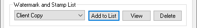 The currently configured watermark or stamp can be saved for future use by clicking on the Add to List button and entering a name for the watermark/stamp. Every configuration (font size, rotation, position etc.) of the current watermark/stamp will be saved.