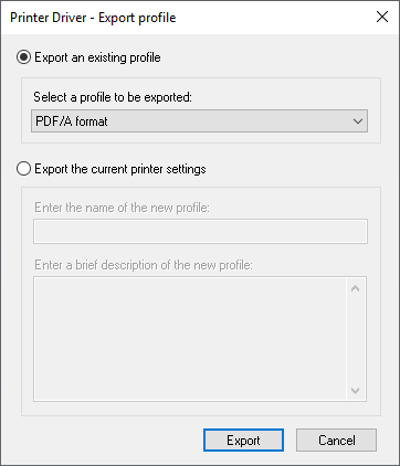 The customized Profile file for the MSI installer can be generated by an already installed “End-User” Printer Driver with the following steps: