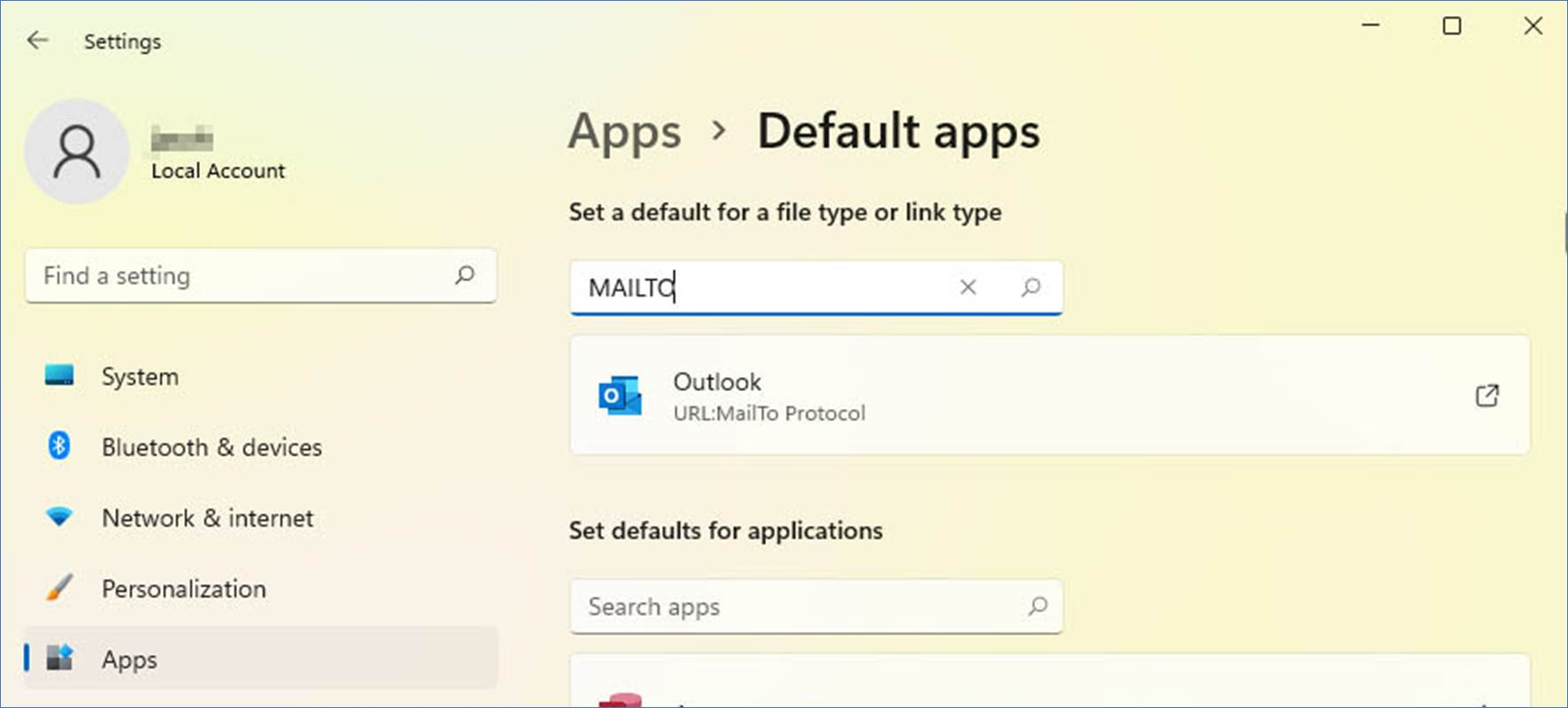 To configure Microsoft Outlook Classic as the default email client, please go to Settings > Apps > Default Apps > and configure Outlook to the MAILTO action, as in the following image:
