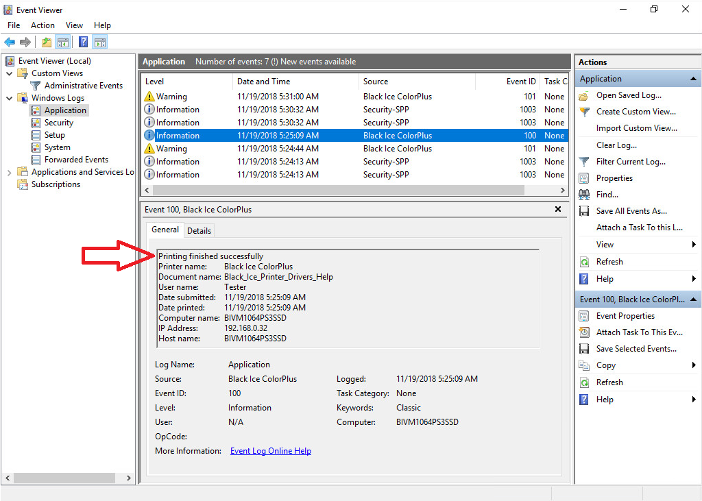 Set the "Event Logging Level" in the printer driver INI file to 1 or 2 or 3, in order to generate event if an error occurs during printing.