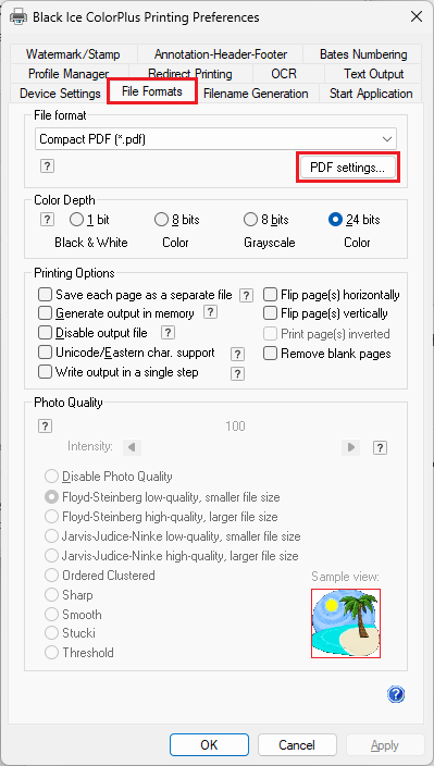 3. Click on the File Formats tab, then the PDF settings⦠button: