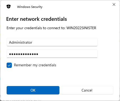 3. Enter the credentials of the host computer, and please make sure to enable the Remember my credentials checkbox.