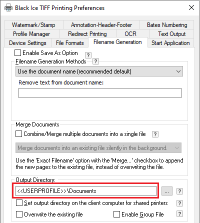 When printing with the Black Ice Printer Driver, the user needs to have write access permission for the configured Output Directory. When the Output directory is configured during installation, the administrator has write access to any folder. The user may not have write access to the folder after installation. The Output directory can be configured for the Printer Driver in the Control Panel > Printers and Devices > right click on the Printer Driver > Printing Preferences > Filename Generation Tab.