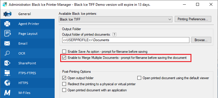 Black Ice Printer Drivers offer a user-friendly way to merge/combine multiple print jobs into a PDF or TIFF file with a preview feature. The User can rearrange the document in the merge window list by moving up or down the document. The Preview Window is an exceptionally useful feature that lets users view and identify the selected document in the Merge Window list to organize the document.
