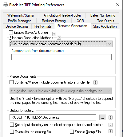 3. After creating the Agent Printer, click Configure for All Users on the right, and then go to the Filename Generation tab.