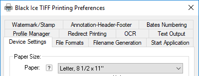 To setup the N-Up printing, go to Control Panel > Devices and Printers > right-click on the Black Ice Printer Driver > Printing Preferences > Device Settings Tab.