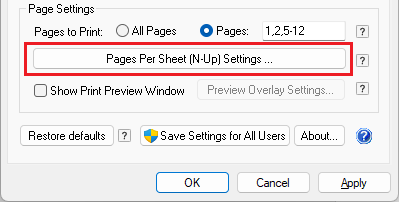 Click on the Pages Per Sheet (N-Up) Settings button to open the N-Up Printing Settings.