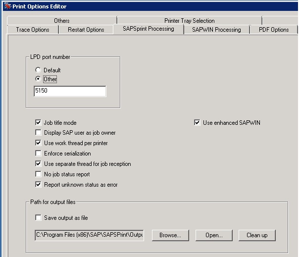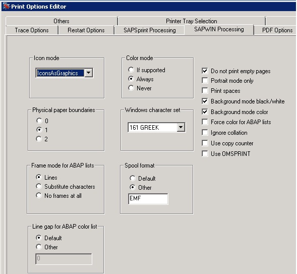 2., Sap will be not be able to print EMF if LPD port is the same with the one used by Windows, change the LPD port to 5150 and set spool type to EMF.