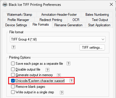 Note: When OCR is performed on documents containing special or accented characters, the Unicode/Eastern character support option must be enabled on the File Formats tab to ensure correct character recognition.