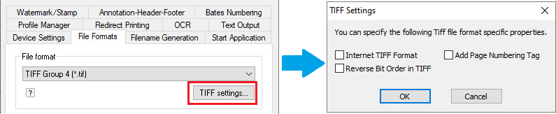 The following settings are only available for TIFF files.