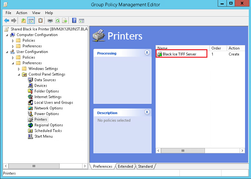 Navigate to User Configuration -> Preferences -> Control Panel Settings -> Printers.