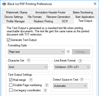 When Mail mergeoption is checked, the driver recognizes special character sequences in the printed text to extract information into an MRG file.