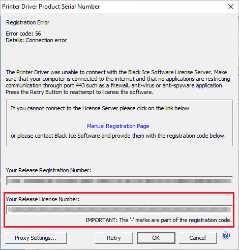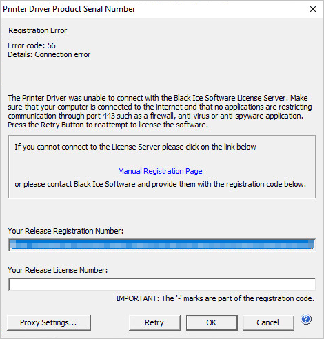 To Register/Activate the Printer Driver a secure Internet connection is required to the Black Ice Software License Server through (HTTPS) port 443.