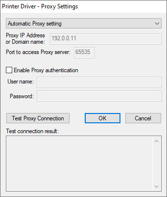 If the Proxy server is using user authentication, the Proxy authentication checkbox must be checked and the User name and Password must be specified.