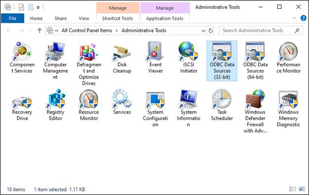 To start configuring an ODBC connection, go to Control Panel > Administrative Tools > and open the ODBC Data Sources, or simply type “ODBC” to Windows Search.