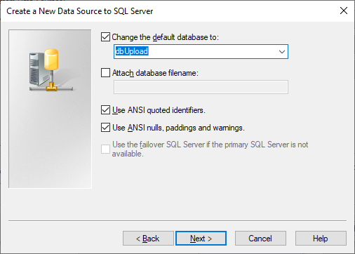 Change the default database to the database where the documents must be uploaded to. Click on the Next button to continue.