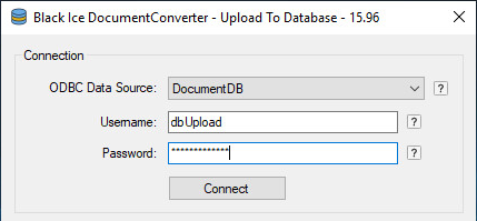 ODBC Data Source: One can select the destination ODBC data source to upload the documents to.