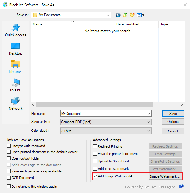 Using the Exact Filename or the Use the document name option in conjunction with the Combine/Merge… checkbox allows multiple print jobs (documents) to be merged together. When this option is turned on, the printer driver merges the new pages to the existing file instead of overwriting the file.