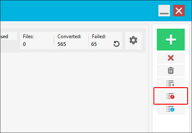The Conversion History window will open, showing the occurred errors (When clicked on Show Errors), otherwise the entire conversion history.